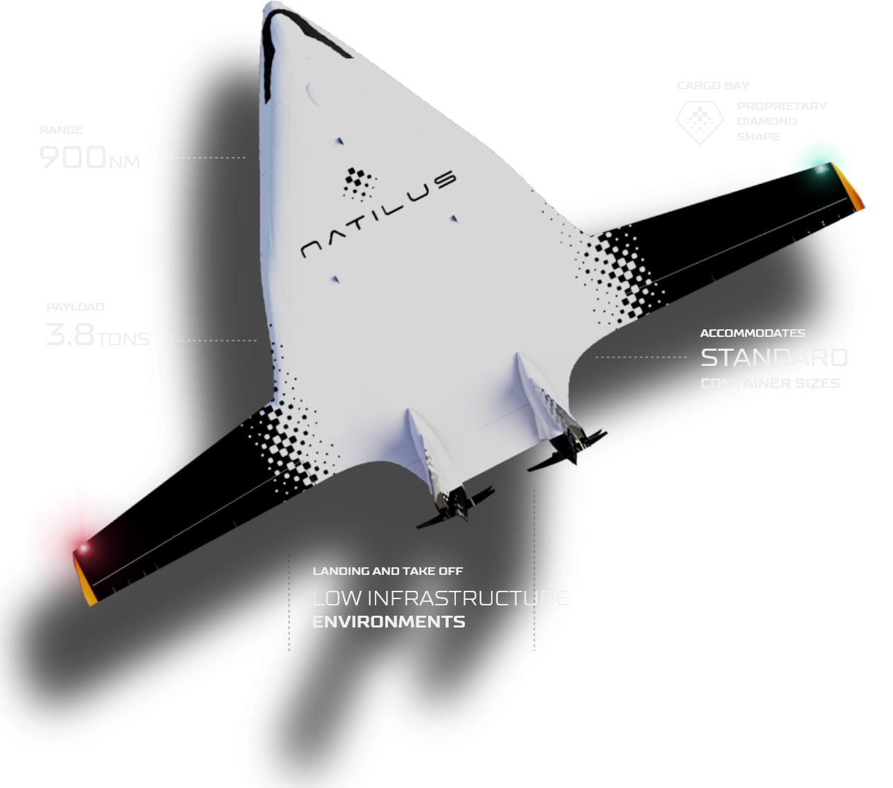 We’re revolutionizing the commercial air cargo industry with our first blended-wing-body (BWB) aircraft, the Kona. The KONA can carry a payload of 3.8 metric tons and boasts a range of 900 nautical miles, making it an ideal solution for short-haul cargo operations and e-commerce.